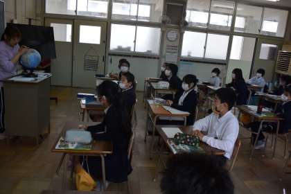 地球儀を使って、地球はどんな姿をしているのかを調べました。