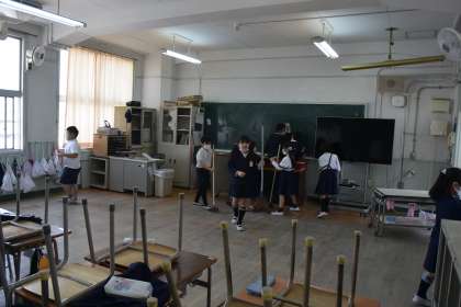 チャイムが鳴ったら遊びをさっと切り上げて掃除をしていました。