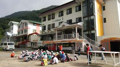 グループで鉢伏高原の自然をしっかり観察し、いろいろな昆虫や鳥、植物などを探します。