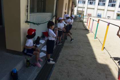 待っている子も「がんばれー」と応援していました。応援してもらうと嬉しいですね。