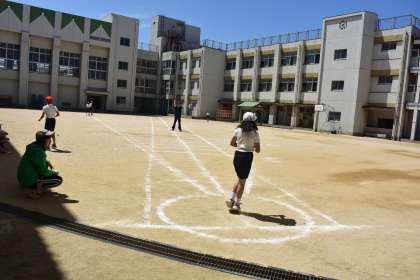 ソフトボール投げの様子です。