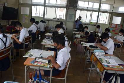 「災害復興に向けた取り組み」について教科書を読み、分かったことをノートにまとめていきました。線を引いたり印を付けたりしながら、大切なところを見つけていきました。