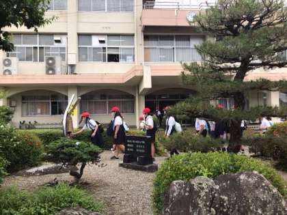 真光寺から貞光小学校に移動します。昼食の後は貞光小学校の6年生との交流活動です。