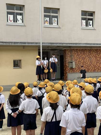 今日からろうか階段を歩こう月間が始まりました。今年度は、全校児童が廊下を左右に分かれて歩けるように、低学年の教室の前には動物の足跡を、高学年が使用する階段には真ん中に折り鶴を、行事運営委員会が準備してくれました。