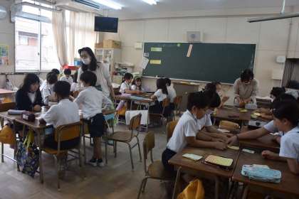 その後、緑黄色野菜と淡色野菜に分けました。ねぎや白菜など、緑もあるけど白っぽいのはどっちだろう…と悩みながらでしたが、なんと全問正解!!さすがです。