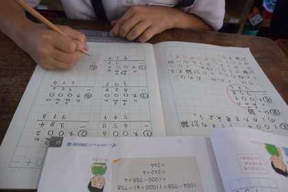 ノートも、マス目を使って見やすく書いています。こうすると計算ミスも減りますね。