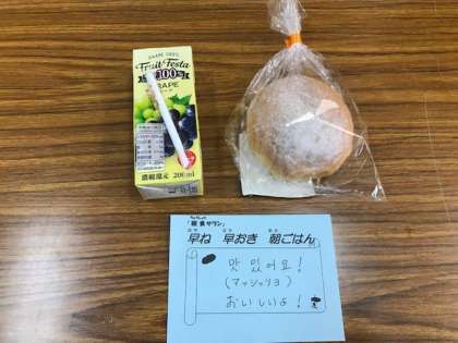 第2回朝食サランを行いました。今回は、スウィートブールとグレープジュースです。