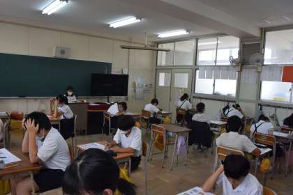 学習を振り返り、テストをしました。リスニングにも慣れてきたようです。