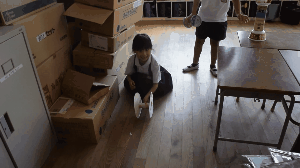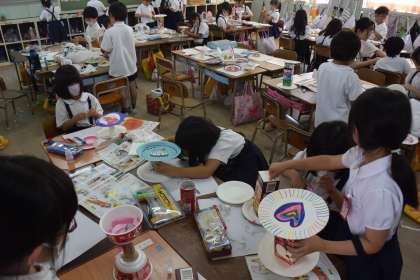 家からカップラーメンの容器やお菓子の箱など転がりそうなものを持ってきている子もいました。好きな絵を描いたり、ひもを付けてひらひらさせたりと、工夫しながら製作しました。