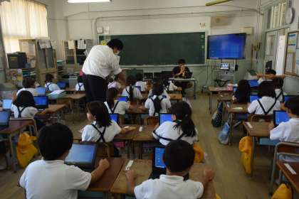 学習参観後にパソコンとアダプターをお渡ししますので、お子さまと一緒に接続してみてください。