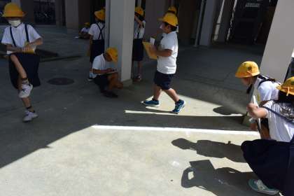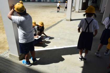 かげがあるところに印をつけておき、時間が経つと、どう変化していくのか観察しました。