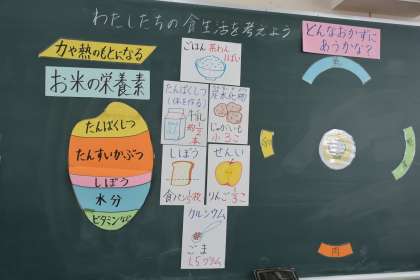 お米の栄養素を学習した後、お米に合うおかずを考えました。