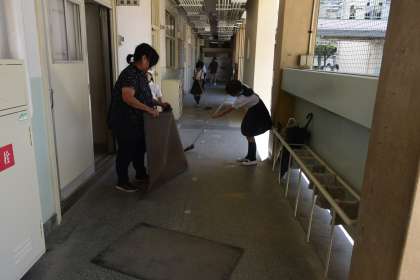 チャイムが鳴ったら、すぐに掃除にとりかかっていました。
