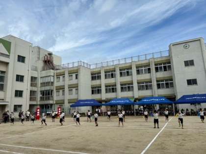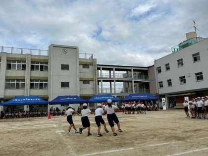 3年生は、団体競技「ぐるぐるドッカーン!」と団体演技「すきやねん 大阪」を行いました。本日の演技のトップバッターを堂々とつとめてくれました。