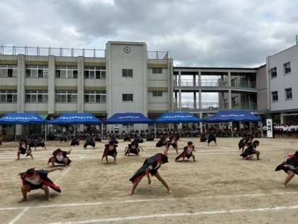 4年生は個人走と団体演技「魅せろ!!南恩ソーラン2023」を行いました。低い姿勢を維持しながら、大きな動きを見せてくれました。