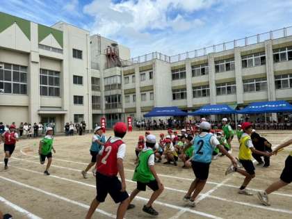 6年生は、リレー、団体競技「騎馬戦〜南恩出陣〜」、団体演技「心をひとつにFlags」を行いました。最後の運動会をみんなで最高のものにしよう、そんな思いを感じさせる堂々とした見事な演技でした。