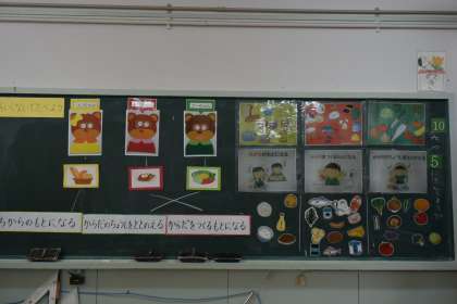 食品を、赤、黄、緑に分類して、それぞれの役割について学びました。