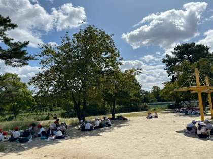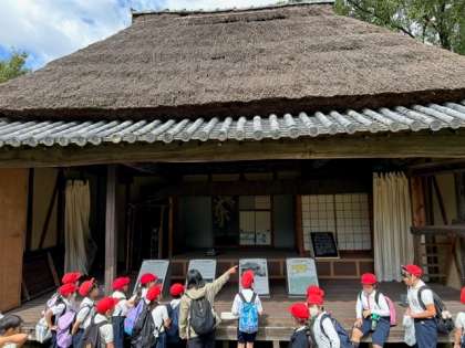 さわやかな青空の下、服部緑地にやってきました。民家集落博物館では、200以上前の建物や道具を熱心に見学することができました。