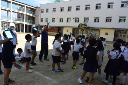 鏡に太陽の光を当てて、いろいろな実験をしました。
