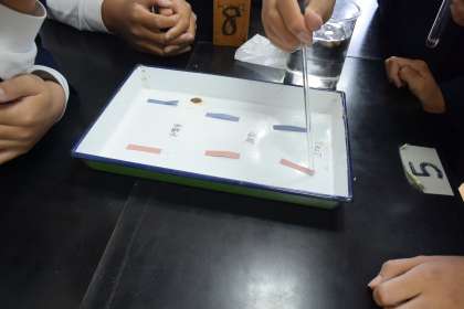 塩酸、アンモニア水、食塩を使いましたが、酸性、アルカリ性、中性がはっきりとわかりました。