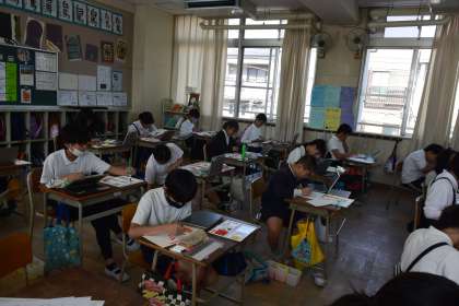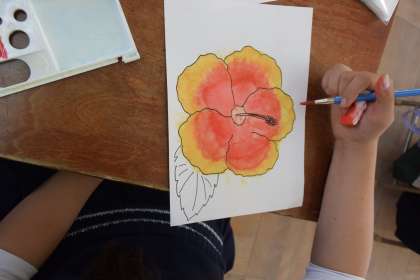 ハイビスカスの花にグラデーションをつけて塗りました。