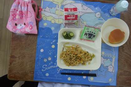 「焼きそば、やったー」と言いながらパクパク食べていました。