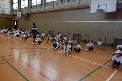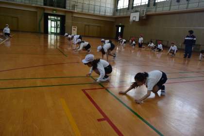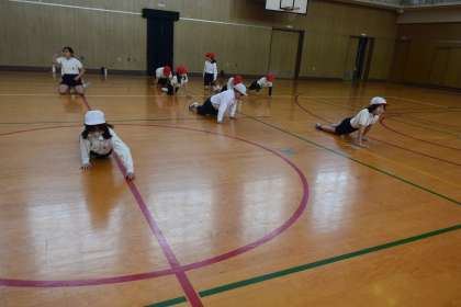うさぎやアザラシなど、動物の歩く真似をして体力づくりをしました。