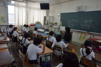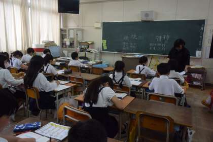 その後、先生から本の読み聞かせがありました。くすっと笑いながら楽しそうに聞いていました。