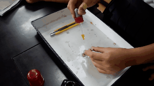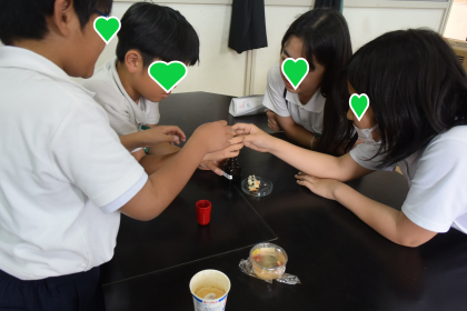 ヨウ素液を垂らすと、少しずつ色が変わっていき、最後は青紫色に変化しました。