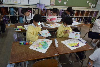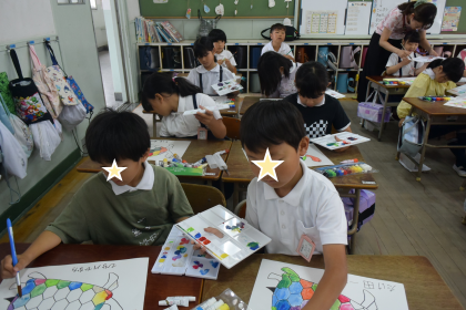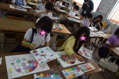 先生から使い方を教えてもらい、亀の甲羅を一つひとつ丁寧に塗っていきました。