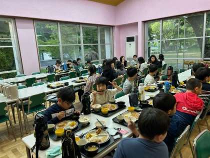 たくさん活動した後は美味しい夕食です。みんなしっかり食べています。