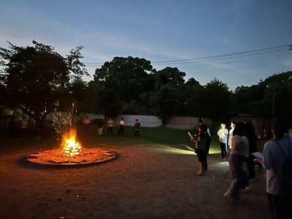 夕食後はキャンプファイヤーです。係の児童が司会進行をすべて行ってくれています。