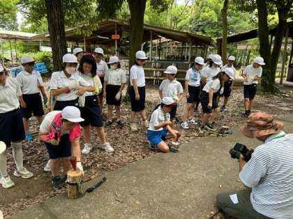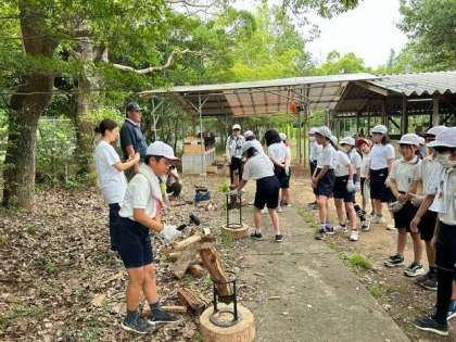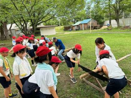 今日最初の取り組みは、薪割り体験です。3つのやり方に挑戦します。