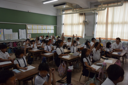 鶴町小学校の栄養教諭の先生に来ていただき、「噛むことの大切さ」について教えていただきました。