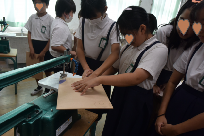 また、デザインに合わせて、周りを糸のこぎりで切りました。