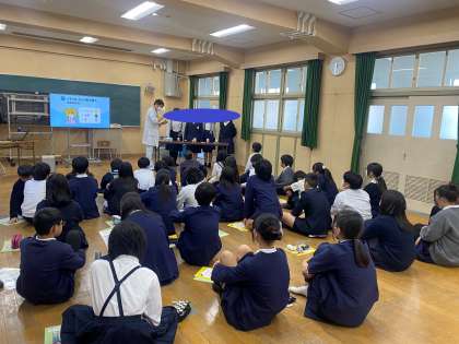12月2日(月)、6年生が、薬の正しい使い方について、学校薬剤師の米山先生からお話をお聞きしました。どのような飲み物で飲むのがいいのか、実験してくださいました。やはり、水で飲むのがよかったです。多めの水がいいようです。