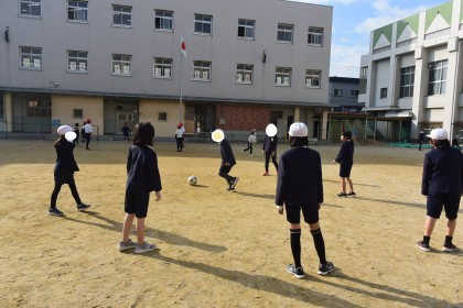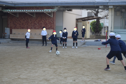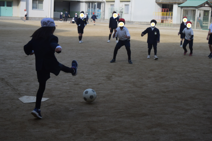 力いっぱい蹴って、遠くまで飛ばしている子もいました!