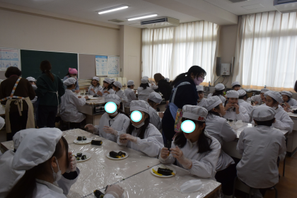 在日本韓国人ゴルフ協会の方と地域の方にご協力いただき、5年生がきんぱ作りをしました。