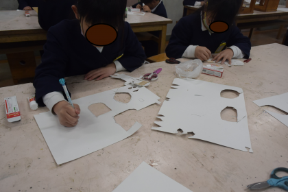毛糸やプチプチ、楊枝なども使いながら、工夫して作っていました。