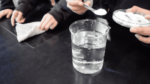 塩を水の中に入れると、どうなるかを調べました。