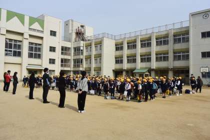 校長先生から先生たちの紹介があり、新しい担任の先生を嬉しそうに迎えていました。