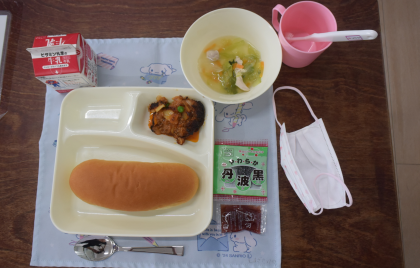 昨日に引き続き、6年生が手伝いにきてくれました。6年生が食器を並べてくれるのを1年生は楽しそうに見ていました。メニューは「コッペパン・いちごジャム・牛乳・じゃがいももミートグラタン、レタスのスープ・ソフト黒豆」でした。手伝ってくれてありがとうございました。