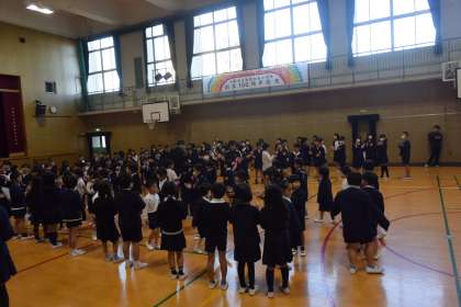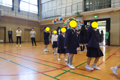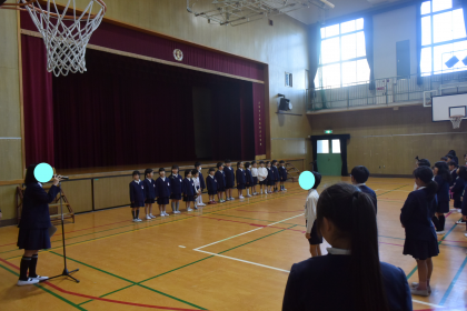 1年生を迎える会がありました。花道を作って、全児童で1年生が入学してきてくれたことを歓迎しました。最後には、2年生から「おめでとうメダル」をプレゼントしました。1年生のみなさん、あらためてこれからもよろしくお願いします。