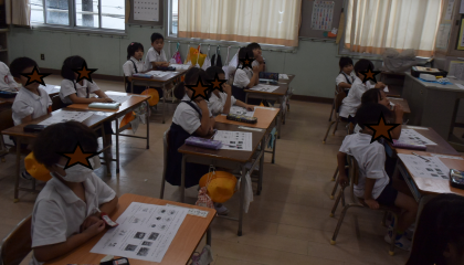 北恩加島小学校の栄養指導の新地先生に来ていただき、「給食はかせになろう!」ということで、給食についていろいろ教えていただきました。