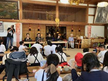 ご住職のお話の後、徳島市内から1時間かけて来てくださった、朗読会「さざなみ」の方による「十六時蔵物語」の朗読を聞きながら、お弁当を食べています。