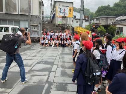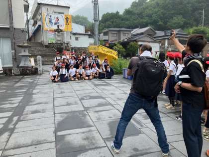 出発前の学級ごとの記念撮影