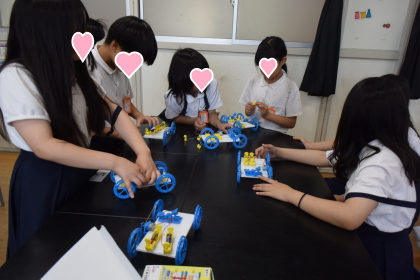 電池のつなぎ方を直列か並列にして、車を動かしてみました。