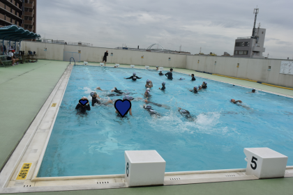 ビート板を使って泳いだり、クロール、平泳ぎをしたりもしました。