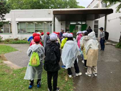 雨は降ったりやんだりですが、無事に信太山青少年野外活動センターに到着しました。