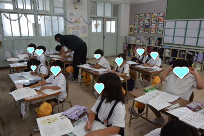 「ねばねば なっとう」「ぱりぱり せんべい」「ぺらぺら ほん」など、たくさん考えました!